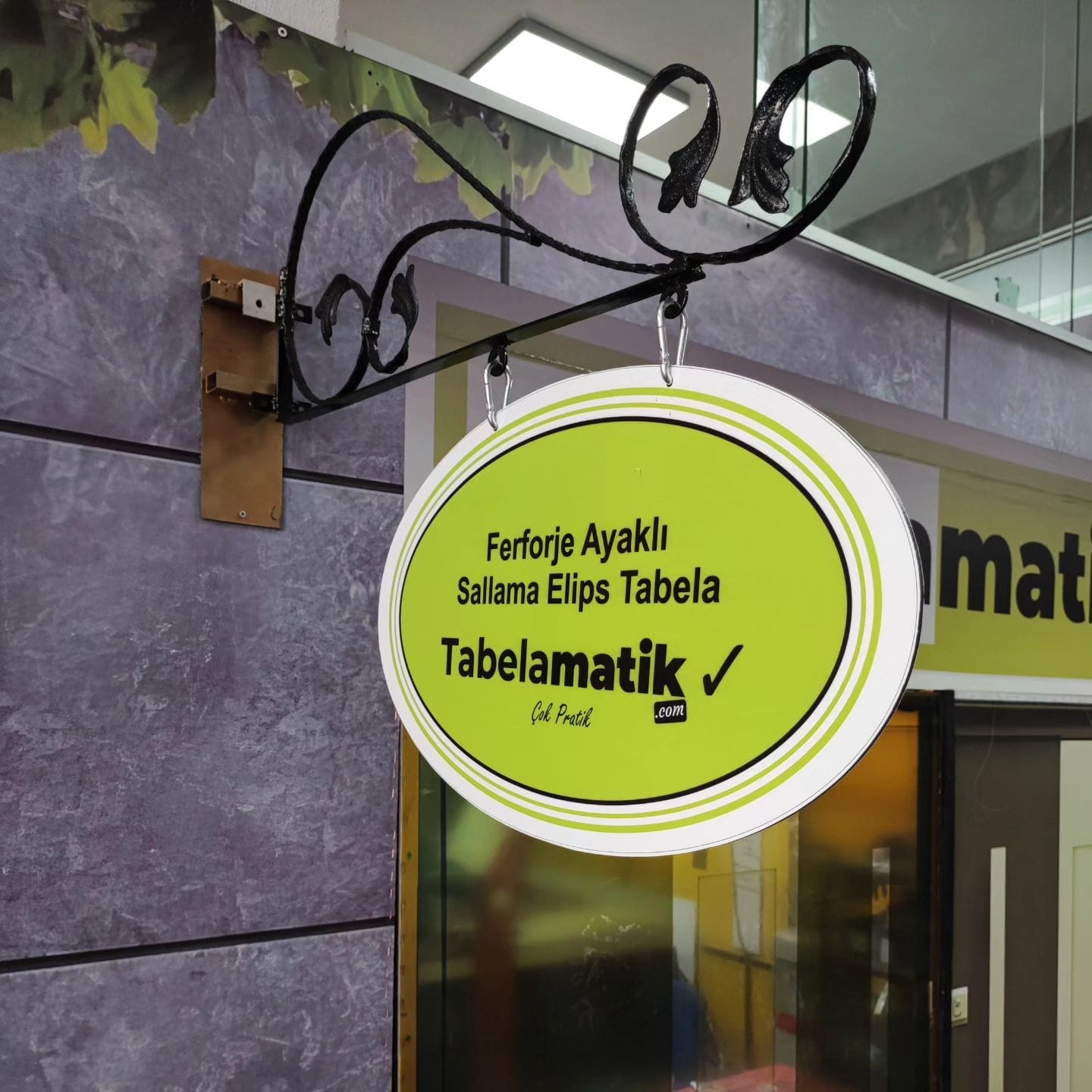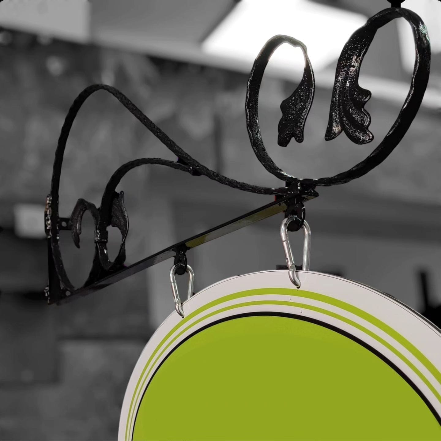 Елиптичните и кръгли люлеещи се табели от ковано желязо с крака са чудесен вариант за добавяне на елегантност и естетика към вашето място. Тези специално проектирани табели могат да се използват както на закрито, така и на открито. Краката от ковано желязо ви позволяват да покажете табелата си по здрав и издръжлив начин, докато люлеещият се механизъм позволява на табелата ви да придобие привличаща вниманието динамика.